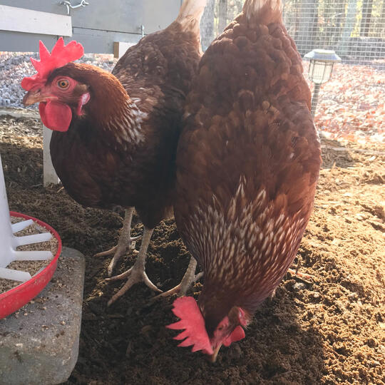 Marianne & Ginger: The head hens, they're always together. Marianne rules everyone with an iron fist while Ginger eats everyones snacks. They both jump very high when there's blueberries involved.